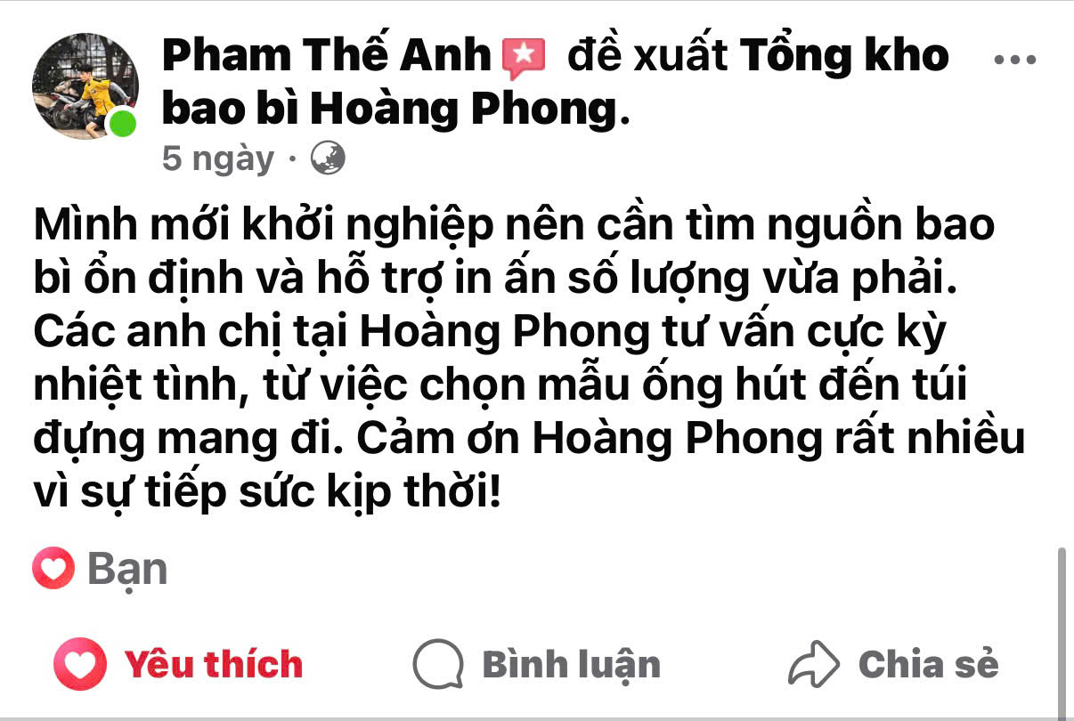 Với tiêu chí chất lượng – giá tận xưởng – giao hàng nhanh, Hoàng Phong luôn đồng hành cùng khách hàng trong việc nâng tầm thương hiệu và tối ưu chi phí kinh doanh.
